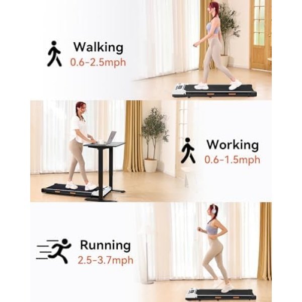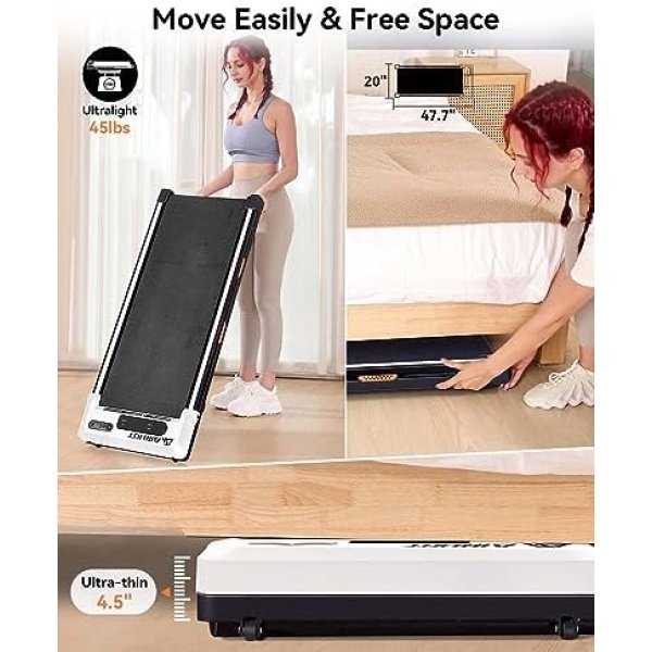 【Save Space & Compact Design】 – Our portable ultra-thin treadmill is designed to fit any space. With a thickness of only 4.6 inches, it won’t take up too much room in your home. Plus, it can be easily stored under your bed, or sofa and with built-in wheels, convenient for women to move easily