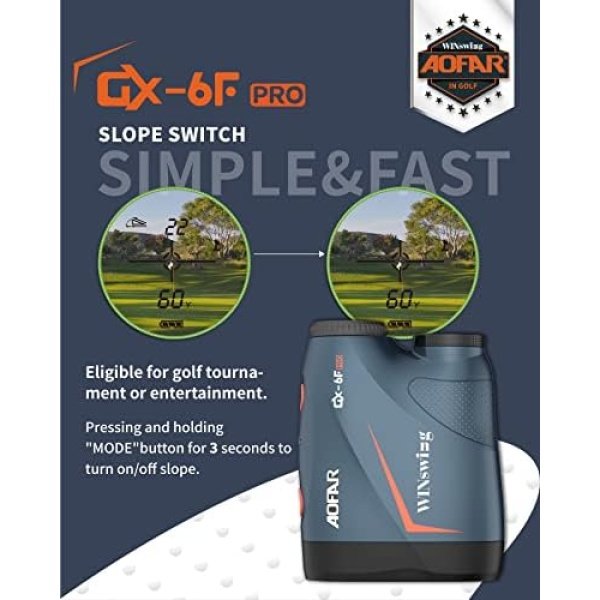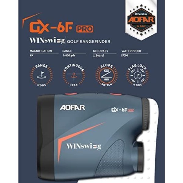 AOFAR GX-6F PRO Golf Rangefinder with Slope on/Off, Flag Lock