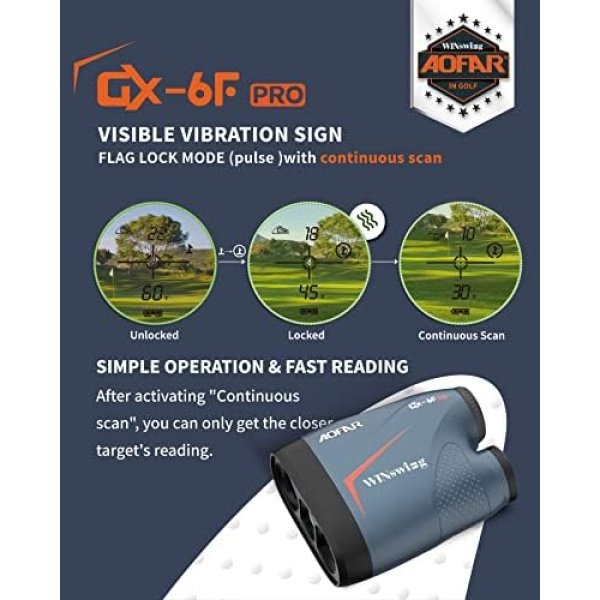 🏌🏾♂️【FLAG LOCK WITH CONTINUOUS SCAN-ACCURATE AND RELIABLE】When you encounter a flag that is difficult to measure,use the flag lock function.Scan from far to the flag, you will get the distance and feel the vibration while locking.After a successful lock,continue to hold down the”POWER”button and move to a closer target (above 5 meters / 6 yards) to activate the “continuous scan function”.You can only read the reading of target closer than the previous target.Save time to win the tournament.
