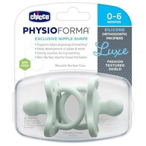 A LUXE-urious pacifier that soothes babies, and parents alike! The PhysioForma Luxe Orthodontic Pacifier is a one-piece, 100% soft silicone pacifier with a softly textured shield and handle. Parents love that these pacifiers not only soothe but also provide benefits for baby’s breathing and orthodontic development.