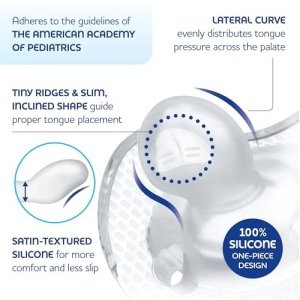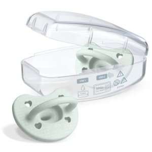 Babies love that the nipple is made from extra-soft, velvety silicone and has a satin-textured finish that helps baby keep the paci in their mouth for uninterrupted soothing. The just-like mom, skin-like feel is also ideal for breast-fed babies. Multiple ventilation holes promote air circulation and help reduce moisture buildup on baby’s soft, sensitive skin. Plus, the textured shield gently soothes baby during teething and the easy-to-grab handle is just the right size for either baby or parent to hold.