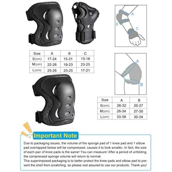 (Size M) Knee Pad Size:16.5 * 12.5 cm(L*W); Elbow pad size: 14.5 * 11.5 cm(L*W); Wrist pad size:16*8 cm(L*W)