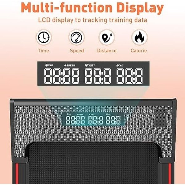 [Compact Size & Lightweight Design] The size of the walking treadmill is 1183*490*113mm, and the compact size allows it to be stored in any desired location. Such as under the sofa, under the bed or at the bottom of the wardrobe.