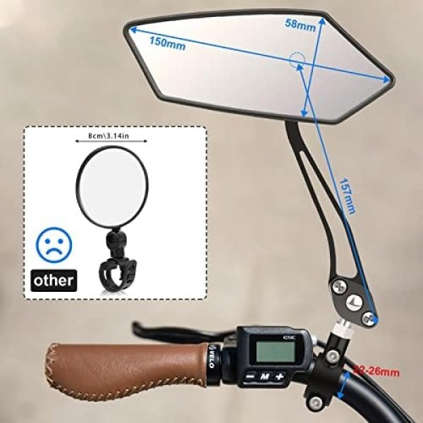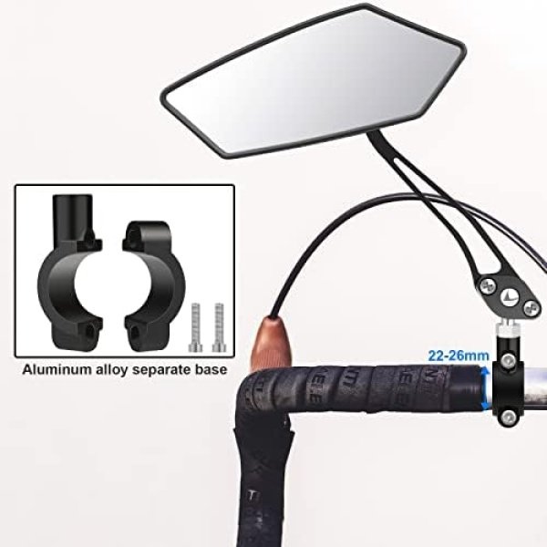 【Sturdy and Durable】Diyife wide angle bicycle mirror consists of HD wide angle glass mirror, ABS housing and aluminum alloy support pole, which is impact resistant and corrosion resistant, even when driving on uneven terrain, the rearview mirror can be stuck.