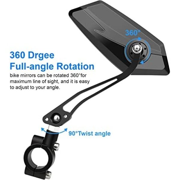 【360° Adjustment】Mirror 360° adjustable, up and down or sideways to any angle you want. 【Package include】: a pair of bike mirrors, 2 x handlebar clamps, 1 x Allen wrench