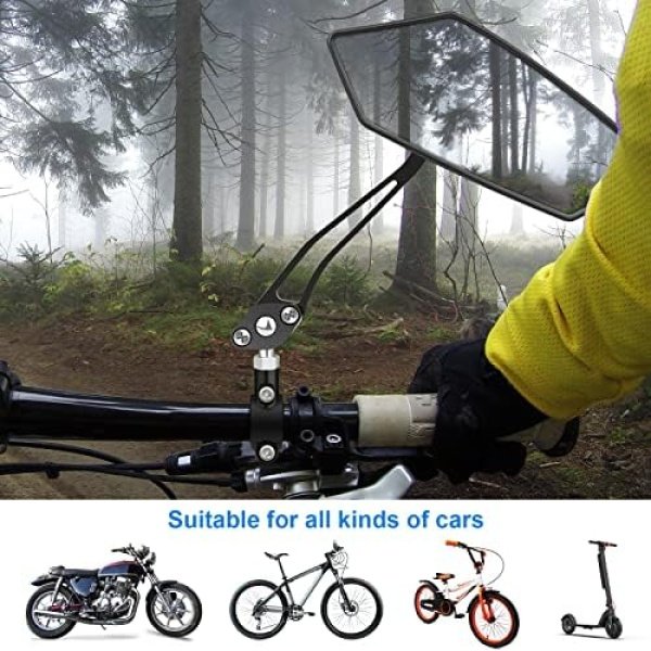 【Wide Range of Uses】Suitable for 22-25mm handlebars, equipped with wrench, convenient and quick installation of rearview mirrors on various bicycles, electric scooters, electric bikes, motorcycles.