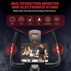 【Better Plan Your Workout】 The monitor on our stationary bike can captures your time, spd, dst, cal, odometer, and grasps the movement progress in real time. The hand-held pulse shows real-time heartbeat, which is very necessary for some people in need.
