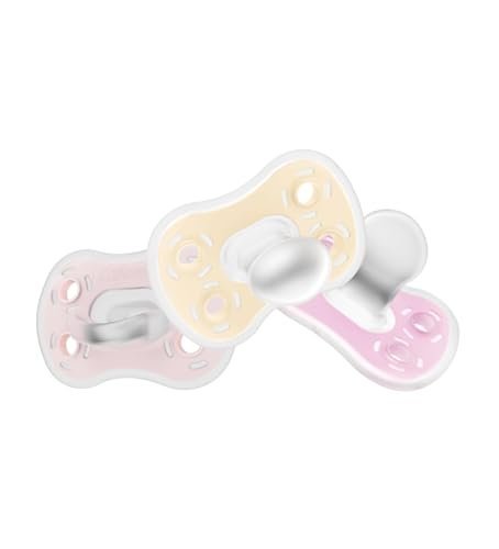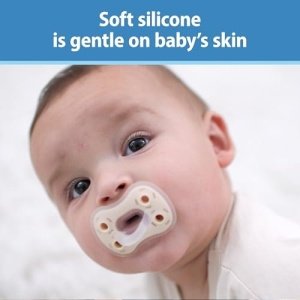 SOFT SILICONE ONE-PIECE SOOTHER. The one-piece silicone pacifier is made with soft silicone that’s gentle on baby’s skin.