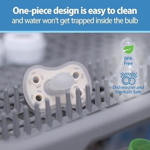 CONVENIENT ONE-PIECE DESIGN. The one-piece design is lightweight, and water won’t get trapped inside the pacifier bulb.