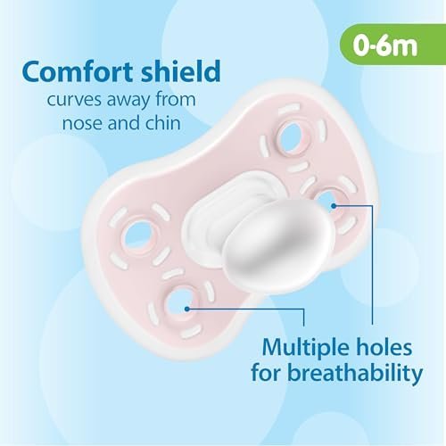 BREATHABLE SHIELD. The shield curves away from baby’s nose and chin and holes in the shield help provide plenty of air for baby’s sensitive skin to breathe.