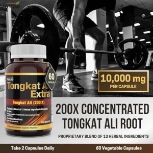 200:1 Tongkat Ali Extract Capsules – Each of our concentrated tongkat ali capsule contains 50mg of tongkat ali extract (200:1 Concentrated), which is equivalent to 10,000mg of raw tongkat ali!