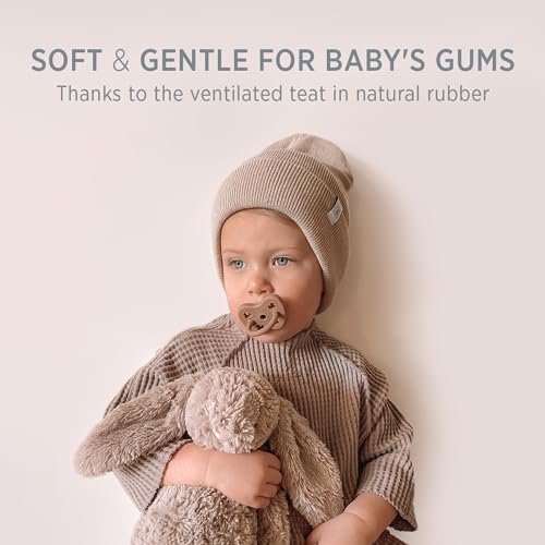 DANISH DESIGNED – Not only do our pacifiers look amazing – with beautiful color options and four adorably-shaped ventilation holes (surpassing safety standards), the teat’s ventilation hole makes the teat super soft and malleable for baby, while also being durable to resist baby bites