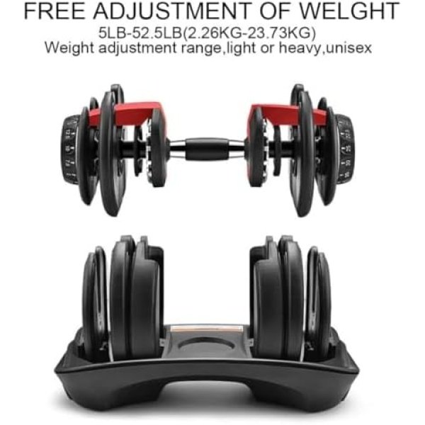 Easily Switch Exercises – With adjustable dumbbells, adjust from one exercise to the next with selection dials. With the turn of the dial, one can change the resistance and gradually increase the strength—a versatile workout for your legs, back, chest, abs, shoulders, and arms. Press down the handle slightly and set the desired weight.