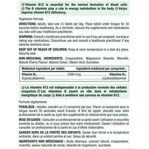 Prairie Naturals Sublingual B12 Methylcobalamin 1,000mcg & Folic Acid Tablet