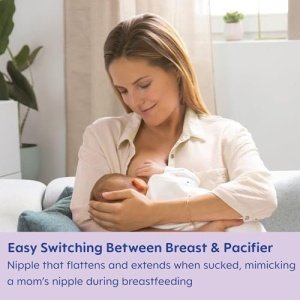 SYMMETRICAL DESIGN: The breastfeed pacifier for babies is fun and functional. The curved shield with wide openings are always right-side up and prevent skin irritation with maximum airflow.