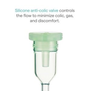 Silicone anti-colic valve helps control flow as baby feeds, reducing colic and gas