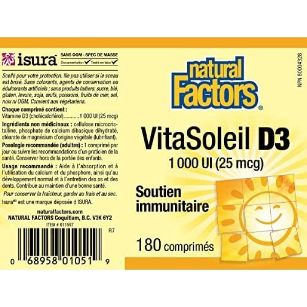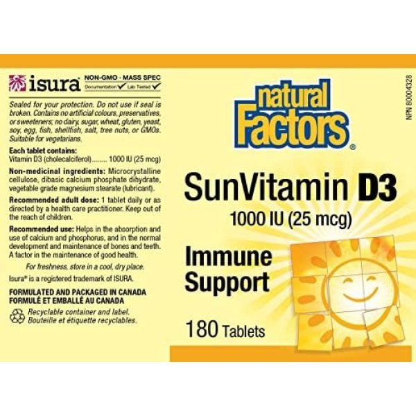 Natural Factors – Vitamin D3 1000 IU, Supports Healthy Bones, 180 Tablets