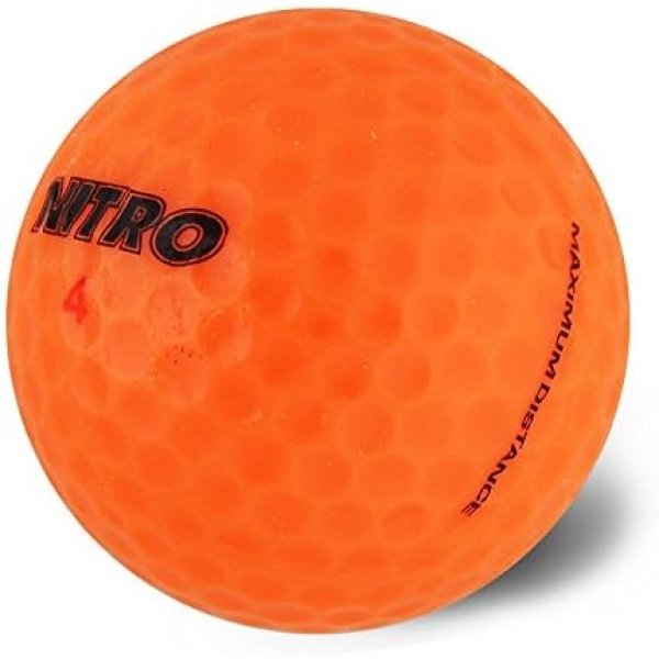 The Nitro Golf Max Distance golf balls have a ultra-reactive titanium core to maximize energy transfer so your shots fly higher and go longer. With the two piece tournament construction insures explosive distance off your metal-woods while providing ultimate stopping ability with your irons. The super reactive Titanium core maximizes the energy transfer from club head to ball. Symmetrical and aerodynamic dimple design increases lift while decreases drag for higher and longer shots.