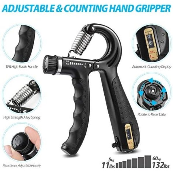 ADJUSTABLE COUNTING GRIP STRENGTHENER – Mechanical counting from 0 to 99, and start a new round. Do not have to count yourself. Help you focus on exercising. Suitable for all age groups and fits well for all hand sizes. Ideal hand gripper for rock climber, guitarists, drummer, wrestler or softball pitcher.