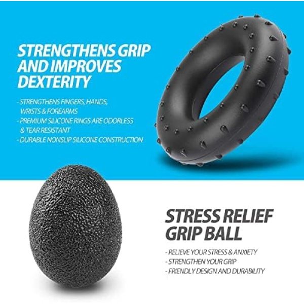 IMPROVE YOUR GRIP STRENGTH & INJURY REHABILITATION – The hand grip strengthener set is not only ideal for strengthening your hands, forearms, wrists and fingers but also great for injury rehabilitation, relieving stress. The kit can be utilized at work, at home, or even on the plane, or bus for your daily work commute. Great for arthritis, tendonitis, tennis elbow and are on the way to recover from a fractured or broken wrist, or any other activities which use your gripping muscles.