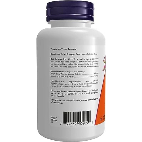 PABA is well known for its use externally in sunscreen products. Para-aminobenzoic acid (PABA) is a naturally occurring non-protein amino acid. It was previously thought to be a B vitamin. Added Vitamin C supports collagen formation and provides antioxidant support.