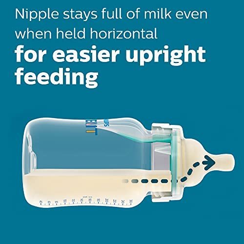Philips Avent Anti-colic with AirFree vent bottles are designed to reduce feeding issues: such as colic, gas, and reflux. The unique AirFree vent is designed to draw air away from the nipple keeping it full of milk to avoid air ingestion. This vent also keeps the nipple full of milk even when the bottle is held horizontal, allowing for upright feeding. Feeding in an upright position can help to reduce reflux and aid in digestion. The nipple shape is designed for a secure latch for a comfortable feed. The bottle is easy to clean and assemble with few parts. The AirFree vent is only one piece and is easy to clean without any special tools. The Anti-colic bottle features a valve, integrated into the nipple, that reduces vacuum buildup and reducing air into your baby’s tummy. The Anti-colic bottle can be used with or without the AirFree vent, giving you the option based on your baby’s feeding needs. The soft silicone nipple is available in different flow rates for babies of all ages, flows 1-4. We recommend using the Philips Avent Anti-colic baby bottle with Philips Avent Anti-colic bottle nipples. Includes 4 4oz Anti-colic bottles with AirFree vent with Flow 1 nipples. SCY701/04