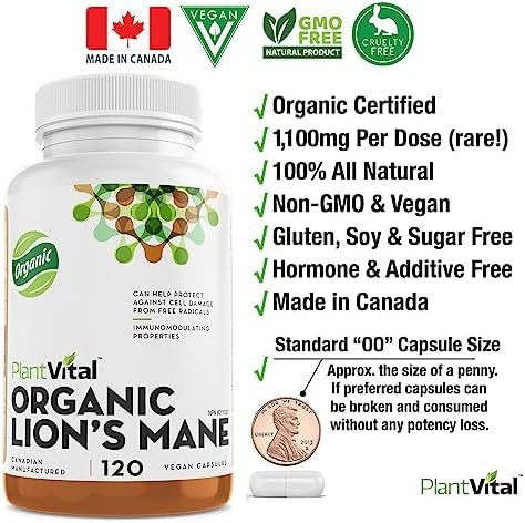 PlantVital Lions Mane Supplement – Lions Mane Mushroom Capsules- Lion Mane