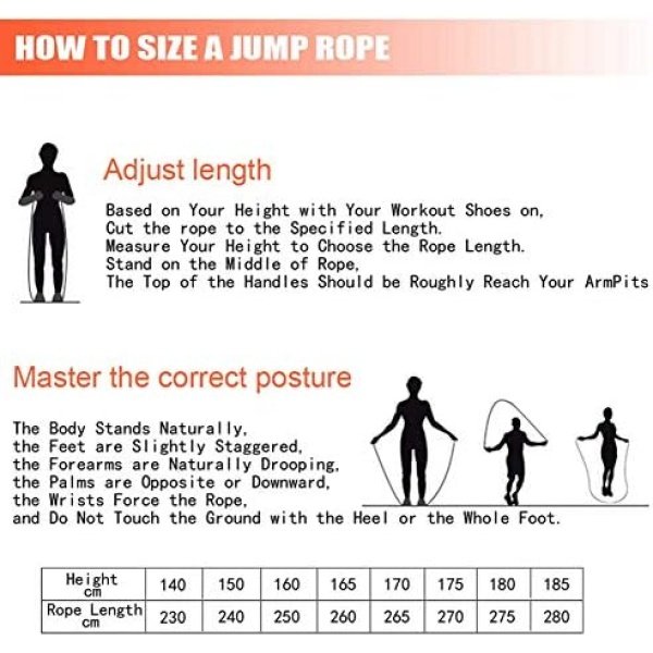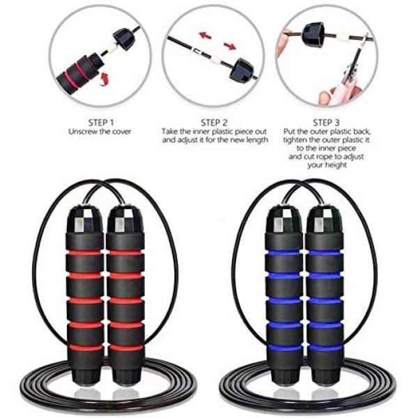 [Adjustable Length & Comfortable Handles] The Jump rope design with 9.8 feet long of the rope, it can be adjusted quickly according to your height,suitable for men women and kids. 2 handles are wrapped in soft memory foam on the surface and feel exceptionally comfortable.Do skipping rope together with your family and enjoy a happy exercise time.