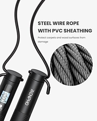 【LCD display & non-slip handle】RENPHO jump rope with counter equips silicone non-slip handle that is made from friendly environmental silicone material, offer you comfortable touch and non-slip when exercising. Also, the main handle is embedded with a backlit LCD display that provides users a clear view of the rope skipping data.