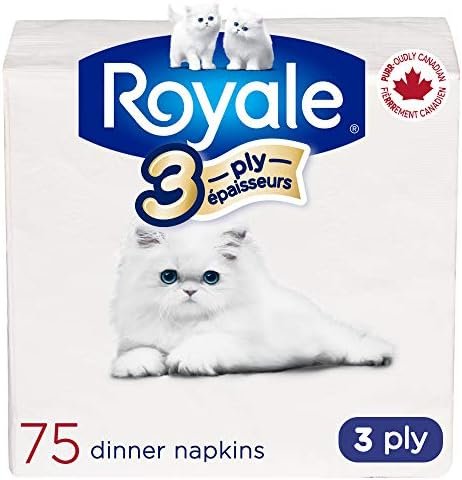 Napkins. Bathroom Tissue. Facial Tissue. Paper Towels. There’s a Royale for every room. ROYALE NAPKINS From birthday parties and picnics, to big get‑togethers and family dinners, kitten‑soft Royale Napkins are the perfect addition to any table. Choose from 3 variations: 1‑ply for everyday use; 2‑ply for when you need a little extra reinforcement; and 3‑ply, a classy option for special occasions that offers an added layer of softness and strength. PROUDLY CANADIAN Every Royale product carries with it a history of quality, reliability and an unwavering commitment to the environment; it’s the reason we’ve been a fixture in Canadian homes for over 50 years. We’re a PURR-oudly Canadian company that makes quality products, trusted to help make everyday tasks a little easier for everyone who uses them.