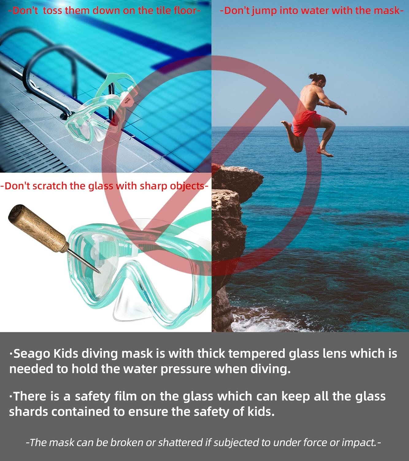 Seago Kids Swim Mask for Swimming Diving, Age 5-15 snorkeling mask for youth teenssnorkeling mask for youth teens Safer and more fun