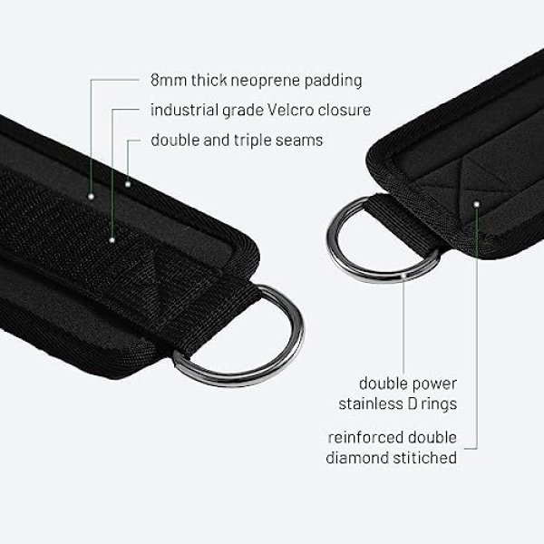 🐼Durable and Comfortable: Forget about the low quality ankle braces you find at your gym! We use a sweat resistant, best breathable neoprene ankle cuff that’s easier on your body. Lift heavier in comfort with soft padding, rounded cuffs and heavy-duty velcro closure. Two reinforced stainless steel D-rings fastened by double stitching offer security and durability for heavy weighted gym workouts.