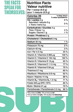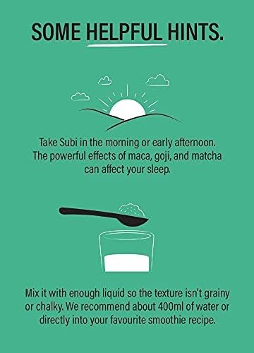 We try our best to fuel our bodies with leafy greens and nutrition that comes from all-natural sources, but sometimes life just gets in the way. We made Subi so that natural nutrition could be convenient and accessible to everyone. A serving of Subi in the morning provides you with 4 servings of nutrient dense greens and >60% of your daily nutrition. There’s something freeing knowing that you started off your day covering most of your nutritional needs. We make eating your veggies simple: just scoop, mix and sip! Mix one tiny, 7-gram serving of Subi into 375mL or more of your favourite morning beverage (water, tea, smoothie – dealer’s choice!) and fuel yourself with all-day energy.