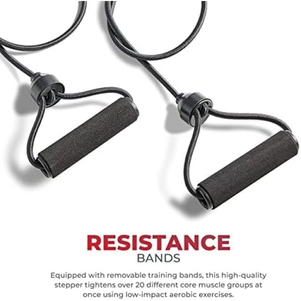 【RESISTANCE BANDS】Boost your workout with 2 removable resistance bands. Target over 20 core muscles, enhancing toning for your chest, back, and shoulders, all while engaging in a low-impact aerobics routine.