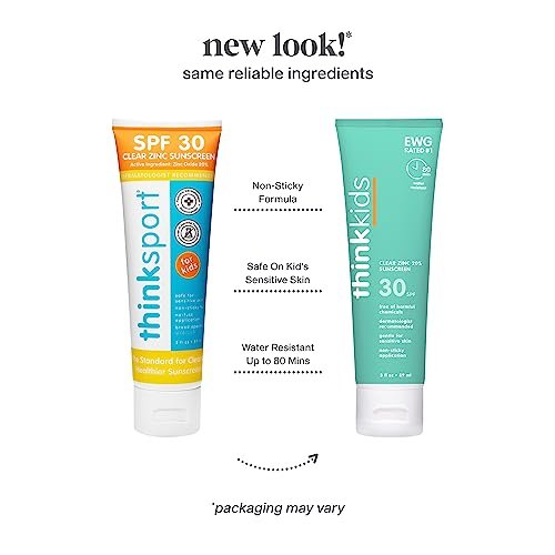 short description Water Resistant, Reef Safe & Travel Size (3oz) Thinkâs pediatric dermatologist recommended, kid safe sunscreen is water resistant for up to 80 minutes. provides broad spectrum protection against harmful UVA and UVB rays, leaving little to no white cast. Effective for playtime in the sun and water. Broad spectrum protection Safe for kids Effective, safe formula to nourish skin Reef Safe Formula Dries clear Water and sweat resistant Description Clear zinc sunscreen is a great option for both adults and kids. It goes on clear, so there’s no need to worry about white streaks, and it’s safe for both reef and marine life. ThinkSport sunscreen is also non-toxic, making it a great choice for kids. So this summer, make sure to pack clear zinc sunscreen for a fun and safe day in the sun! Does not have any chemicals, fragrances, or preservatives, making it perfect for sensitive skin. ThinkSport sunscreen is also vegan and cruelty-free. How to use Apply liberally 15 minutes before sun exposure: Reapply: ⢠after 80 minutes of swimming or sweating ⢠immediately after towel drying ⢠at least every 2 hours when exposed to sun. Extra Sun Protection Measures:Spending time in the sun increases your risk of skin cancer and early skin aging. To decrease this risk, regularly use a sunscreen with a Broad Spectrum SPF value of 15 or higher and other sun protection measures including: limit time in the sun, especially from 10 a.m. – 2 p.m wear long-sleeved shirts, pants, hats, and sunglasses. *For children under 6 months: Ask a doctor The Why With a cleaner, healthier science-led purpose, their mission is to create products with unyielding standards for efficacy that support the wellness of our consumers, their families and our global community.  Ingredients Enriched with leading safe ingredients, our non-nano clear Zinc Oxide, with added conditioning Jojoba and soothing Raspberry Seed Oil, Active Ingredient(s): Zinc Oxide 20% Inactive Ingredients: PURIFIED WATER, CAPRYLIC/CAPRIC TRIGLYCERIDE, POLYGLYCERYL-4 ISOSTEARATE, GLYCERIN, HYDROGENATED GLYCERYL ABIETATE, HEXYL LAURATE, CETYL DIMETHICONE, ALOE BARBADENSIS LEAF JUICE, HYDROGENATED CASTOR OIL, MAGNESIUM SULFATE, HELIANTHUS ANNUUS (SUNFLOWER) SEED OIL, SIMMONDSIA CHINENSIS (JOJOBA) SEED OIL, TOCOPHEROL, OLEA EUROPAEA (OLIVE) FRUIT OIL, RUBUS IDAEUS (RASPBERRY) SEED OIL, VACCINIUM MACROCARPON (CRANBERRY) SEED OIL, SODIUM HYALURONATE, CARICA PAPAYA (PAPAYA) FRUIT EXTRACT, SORBITAN SESQUIOLEATE, CAPRYLHYDROXAMIC ACID, TRIETHOXYCAPRYLYLSILANE, GLYCERYL CAPRYLATE  Safe, Non-Toxic Sunscreen for Kids Formulated to EWG Guidelines Environmental Working Groups Skin Deep database gives people practical solutions to protect from everyday exposure to potentially toxic chemicals in personal care products. Learn More Rubs in, safe, EXCELLENT! â…It rubs in without leaving a white coat behind. It does not have chemicals that cause cancer while trying to prevent cancer. It is does not harm coral reefs. […] My hunt for the perfect sunscreen is over. I highly recommend this productâ – JENNIFER Tested Safe Ingredients for Your Family Free of biologically harmful chemicals, BPA, parabens, phthalates, and other toxic chemicals. Experience highly effective ingredients: â  Non-Nano Mineral Zinc Oxide (20%): Effective physical sun protectant that blocks short and long UVA & UVB rays. â  Titanium Dioxide: UV-filter for short-wave UVA &UVB rays. Effectively blocks absorption of the sun’s UV light. â  Aloe Vera & Tea Leaves: Locks in moisture and helps soothe sun burnt skin. â  Vitamin E: Antioxidant-rich vitamin to condition and soothe skin. Learn More About Clear Zinc Reef Safe Sunscreen Formula Does not contain any known chemicals harmful to coral reefs. Achieved the highest level of biodegradability testing. Learn More Featured In Want to Learn More? See below for related content⦠ What is Clear Zinc Oxide? Clear zinc oxide is a UV filter that is compliant with the natural cosmetic standards of the Natural Products Association. This zinc oxide powder is made of micron-sized zinc oxide and is less whitening on the skin due to it not reflecting as much light as the typical non-nano zinc oxide particles. Read More  Mineral alternatives for everyday sun protection Thinksport sunscreens are made with minerals vitamins and nutrients including; zinc oxide and Aloe, Jojoba, Vitamin E and more! Read More