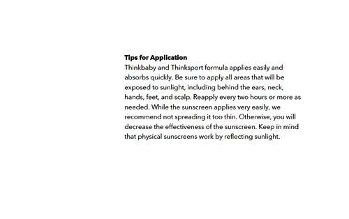 About Thinkbaby / Thinksport We are guided by the ‘Precautionary Principle’ for everything product we bring to market. With over a decade of leadership in product safety, Thinkbaby Thinksport works with leading institutions and scientists to develop products that are both safe for your children and safe for the environment your kids live in. We are focused on your child’s safety while making products that are functional. Thinkbaby Sunscreen – Safe for Your Family, Safe for the Ocean (Size: 6 Ounce, Pack of 1) Thinkbaby Safe Sunscreen was the first sunscreen to pass Whole Foods Premium Care requirements and has held the highest rating in EWG’s database since 2010 with a “1” rating. As a company, we led the movement from BPA, with the 1st BPA-free baby bottle (2006) to the 1st insulated BPA-free sports bottle (2006). We brought the same focus to developing body care and sun care products. SPF 50+, Broad Spectrum, UVA & UVB Protection We are strictly against the use of aerosols due to inhalation concerns to the effectiveness and safety for users and the environment. Our mineral based (zinc oxide) formulations go on smooth and absorb easily without leaving you feeling sticky or goopy. Safe for Sensitive Skin Broad-spectrum protection for UVA and UVB Highest Water Resistance Allowed by FDA Non-Aerosol, Free from Biologically Harmful chemicals Applies & Absorbs Easy, no sticky goopy feel Reef Safe Formula First to pass Whole Foods Premium Care requirements Top-Rated by EWG in 2010 with a #1 Rating Highly Biodegradable Paraben, PABA Free, Vegan, Non-Toxic & Gluten Free
