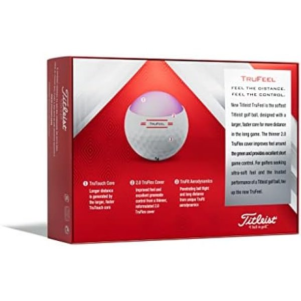 All the feel, all the distance, all Titleist. New Titleist TruFeel is the softest Titleist golf ball re-designed for more distance than ever before and with a thinner cover for improved feel around the green. Plus, the quality you expect from the #1 ball in golf.