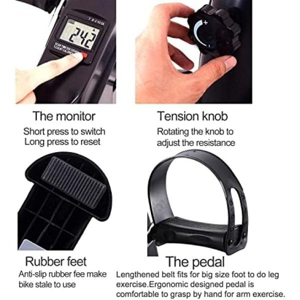 【RESISTANCE ADJUSTABLE】Adjustable resistance for customize exercise, easy to adjust the intension by rotating the knob, pedal is very easy, it is perfect for rehabilitation following a surgery or injury, also great for elderly to do exercise for their legs and arms.
