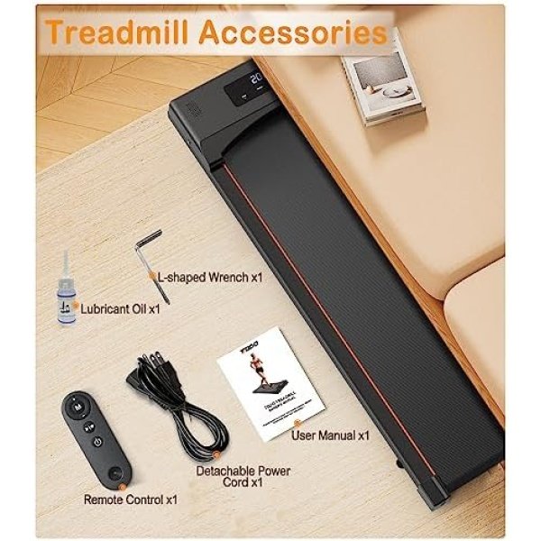 【NON-ASSENBLY DESIGN】TODO under desk treadmill arrives fully assembled and can be used directly after unboxing. Place it anywhere you like and get your fitness start while dealing with your business, watching TV shows, or reading magazines.