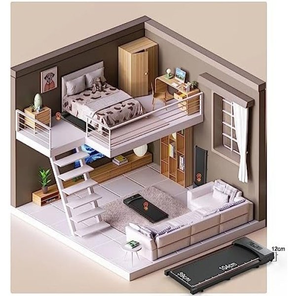 【EASY TO MOVE AND STORE】The thickness of flat slim treadmills for home is only 12cm, could be laid under your working desk, bed or sofa easily with the built-in wheels.