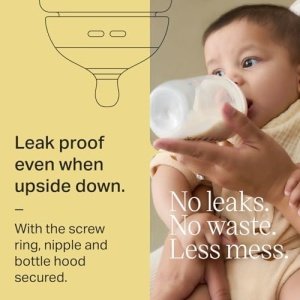 100% Leakproof Bottle to Avoid Messes: When the screw ring, nipple and cap are all secured, your baby bottle is completely mess-free and 100% leakproof, even if it’s turned upside down