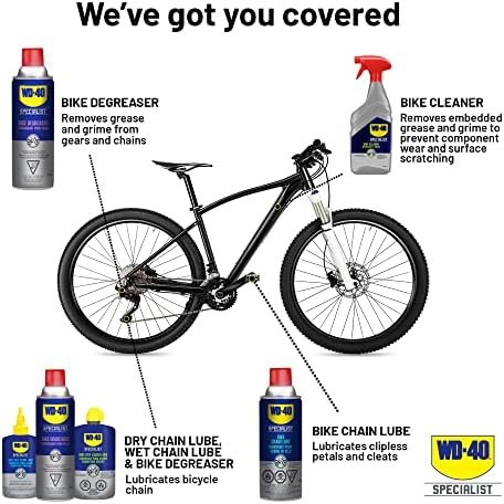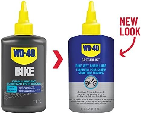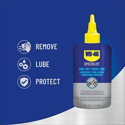 NO-WAX FORMULA. WD-40 BIKE Wet Chain Lubricant prevents friction damage and helps extend chain life for your bike. The no-wax formula will not build up inside chain links and the drivetrain.