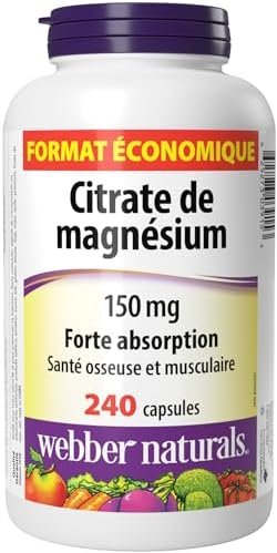Webber Naturals Magnesium Citrate 150 mg, 240 Capsules, High Absorption Mineral