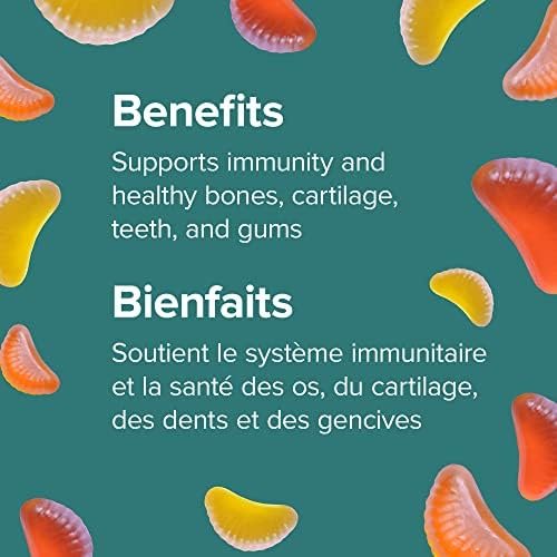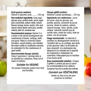 Vitamin C Gummies from Webber Naturals provides an essential nutrient for healthy bones, cartilage, teeth, and gums. Each delicious fruit-flavoured gummy contains 250 mg of vitamin C per serving to support connective tissue and wound healing, and provide antioxidant activity to maintain good health – no need for hard-to-swallow tablets.
