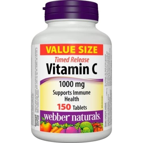 Timed Release Vitamin C from Webber Naturals provides 1000 mg of vitamin C for ongoing immune support throughout the day. Vitamin C is an antioxidant that helps in the development and maintenance of bones, cartilage, teeth, and gums.