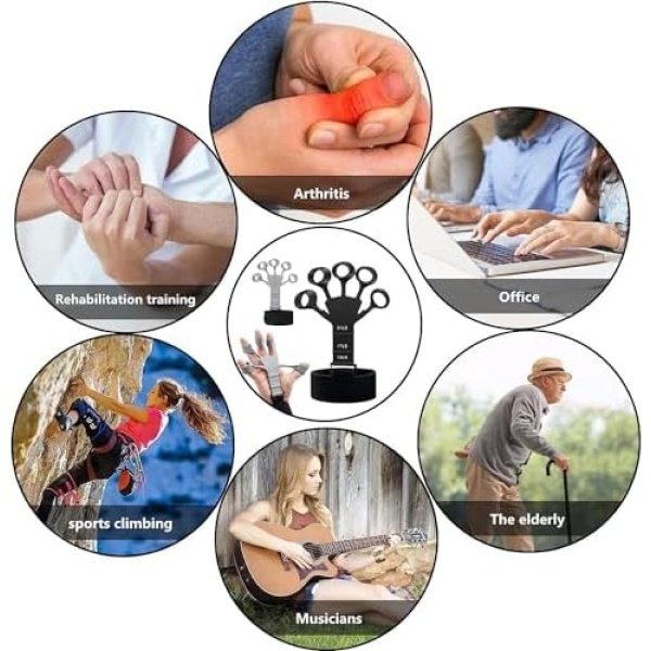 ✅【Perfect Gift Set – 6PCS】Includes 1 Black Finger Trainer, 1 Gray Finger gripper, 2 Wrist Straps, 1 hand strengthners, 1 Finger Tensioner Griper. Ideal for athletes (rock climbing, fitness, tennis, baseball, boxing), musicians (guitar, bass, pianist, violinist), and daily activities (driving, typing, writing, working). A thoughtful gift for friends and family on Thanksgiving, Christmas, and Halloween!
