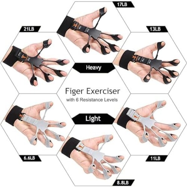✅【6 Levels Resistance Finger Exerciser】ZivKit Silicone Finger Exerciser & Hand Strengthener features 6 resistance levels: 6.6LB, 8.8LB, 11LB, 13LB, 17LB, and 21LB. Choose the appropriate level based on your grip strength, gradually increSTOK CODEg it to challenge yourself and achieve greater gripster hand strength. Suitable for beginners to advanced users.